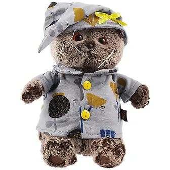 Мягкая игрушка Басик в голубой пижаме в цветочек (19 см)