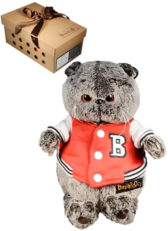 Мягкая игрушка котик сразу продается в классной подарочной коробке, следовательно дополнительно для упаковки ничего не нужно покупать и тем самым можно еще и не плохо сэкономить. По размеру игрушка довольно большая, не мелкая. Пошита вроде ровно, но усы как то торчат в разные стороны не очень красиво. Наполнитель внутри игрушки облегченный и за счет этого она не тяжелая. Ребенок игрушке рад.