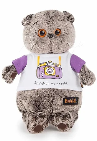 Игрушка мягкая Budi Basa, Игрушка мягкая Басик в футболке с принтом "Весёлый фотограф" 19см