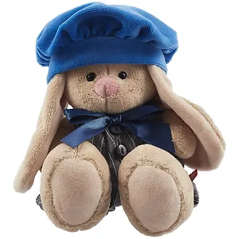 Зайка Ми в сером комбинезоне с синим беретом
