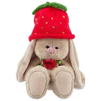 Игрушка мягкая Budi Basa, Зайка Ми в вязаной шапке Клубничка (малая), 18см