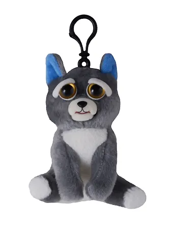 Игрушка мягкая, Feisty Pets, Собака серая, (два выражения мордочки), 11 см, с карабином FP001M