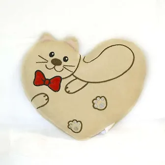 Описание: Мягкая игрушка-подушка в форме сердечка, воплощающая образ симпатичного котенка станет прекрасным подарком и украсит Ваш интерьер.