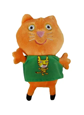 Мягкая игрушка «Кошка Кенди» ТМ «Peppa Pig» имеет высоту 20 см (размер указан с ножками), изготовлена из мягкой, приятной на ощупь велюровой ткани, плотно набита. Глаза и рот вышиты, на платье красочная аппликация в виде тигренка – любимой игрушки Кенди. Товар сертифицирован.