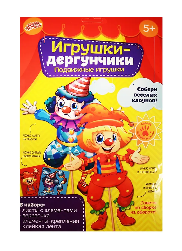 Игрушка Набор д/творч. Клоуны игрушка-дергунчик (1294590) (бумага) (Школа талантов) (5+) (упаковка)