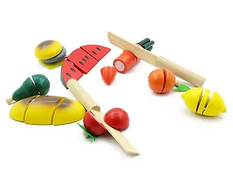 Набор состоит из продуктов, "фруктов" и "овощей". Детали крупные, удобные для детской руки. Каждый продукт разделен на несколько частей, скрепляемых между собой лентой-липучкой. Ребенок с радостью увидит, что в игре все "по-взрослому" есть и разделочная доска, и продукты, и нож. С помощью деревянного ножа кусочки "отрезаются" с легким треском, который делает игру еще более реалистичной и привлекательной для ребенка. Игровой процесс не только занимательный, но и очень полезный для развития ребенка - он позволяет развивать мелкую моторику, координацию движений, наглядно-действенное мышление, обогащать словарный запас, учит ребенка понимать значение части в целом.