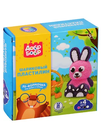 Игрушка «Шариковый пластилин мелкозернистый», маркировка «ДобрБобр», набор Зайка 4 цвета, 360 мл, К/У, арт. НШМН3Д