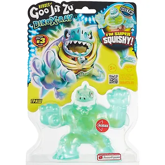Вау! Теперь у них есть кости! Герои Гуджитсу возвращаются в новой серии Дино Икс-Рэй! Сражайся вместе с Трашом в новой битве против доисторических монстров! Зацени на что он способен: Траш (Thrash) может растягиваться в 3 раза и легко принимать свой первоначальный облик. Траш познал дикую силу Дино Икс-Рэй! Теперь он крут не только снаружи, но и внутри! Ну что похрустим костями? Сожми Траша и рассмотри его мощный Дино-скелет! В серии Дино Икс-рэй ты можешь размять косточки и другим персонажам: Тайро, Тритопсу, Шредзу, Террэку, Блейзаготу, а также ультраредкому светящемуся в темноте Смэшадону. Хочешь проверить кости на прочность? Тогда для тебя есть еще 2 набора Дино Икс-Рэй "Доисторическое п