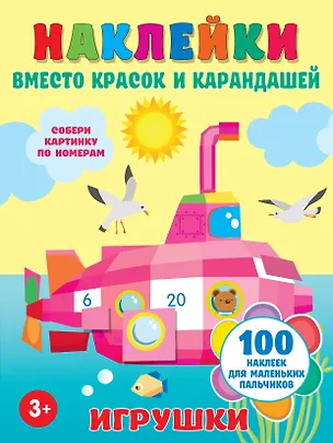 В интерактивной книжке «Игрушки» ребята узнают, что рисовать и раскрашивать можно не только карандашами, фломастерами или красками, но и наклейками. Получаются замечательные картинки! Достаточно подобрать наклейки по буквам или цифрам. Ребёнок удивится и обрадуется, когда паровозик, подъёмный кран, грузовичок и подводная лодка на страницах станут яркими и красочными. Раскраска наклейками — двойное удовольствие в одной книжке: несколько часов полной занятости малыша + развитие логики, памяти, внимания, мелкой моторики и пространственного мышления.