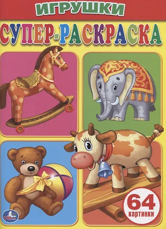 Игрушки. Супер-раскраска. (простая раскраска для маленьких, 64 картинки)
