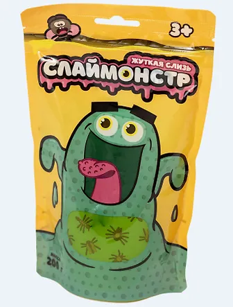 Слаймонстр - это слайм-слизь с фигурками насекомых в пакете дой-пак с прозрачным окошком. Он похож на слизь из фильмов ужасов, жидкую и текучую. Дети не остануться равнодушными к такому подарку и захотят пощекотать нервы себе или в шутку напугать друзей.