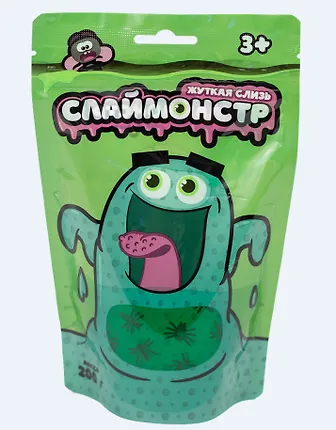 Слаймонстр - это слайм-слизь с фигурками насекомых в пакете дой-пак с прозрачным окошком. Он похож на слизь из фильмов ужасов, жидкую и текучую. Дети не остануться равнодушными к такому подарку и захотят пощекотать нервы себе или в шутку напугать друзей.