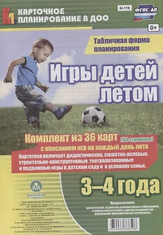 Игры детей летом. 3-4 года. Табличная форма планирования: комплект из 36 карт (64 страницы) с описанием игр на каждый день лета. ФГОС ДО