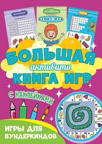 Чем занять ребенка, чтобы он провел время с пользой и удовольствием? У нас есть ответ. Серия больших активити книг! В неё входят 24 различных сборников с интересными играми и развивающими заданиями. Прописи с яркими картинками для подготовки к письму и красивого почерка, увлекательные лабиринты, раскраски, весёлые головоломки, а также нескучные задания по русскому и математике для детей от 5 и 7 лет. С такими книгами ребенок сам не заметит, как в игре закрепит свои знания и получить новые. Можно заниматься и дома, и в дороге.