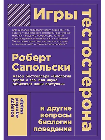 Роберт Сапольски, профессор биологии Стэнфордского университета, автор бестселлера «Биология добра и зла», представляет искрометный сборник очерков о разных аспектах поведенческой биологии. Тестостерон ли причина агрессии, или уровень этого гормона растет при агрессивном поведении, только ли людям свойственна страсть к подглядыванию, может ли стресс убить и что нам делать, чтобы выжить, с какими участками мозга связана сексуальная ориентация и что влияет на сроки полового созревания подростков, а также почему мы уходим от родителей, как связаны поведение и социальный статус, отчего мы плохо себя чувствуем, когда болеем, и сколько «Я» может жить в одном теле? Такие разноплановые и увлекательн