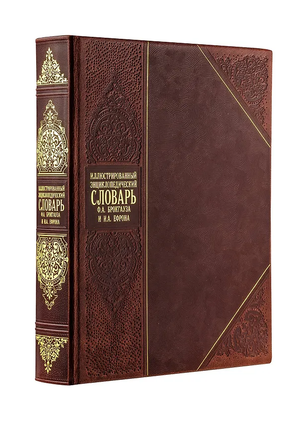 Иллюстрированный энциклопедический словарь Брокгауза и Ефрона. Книга в коллекционном кожаном переплете ручной работы с окрашенным и золочёным обрезом и рельефным тиснением