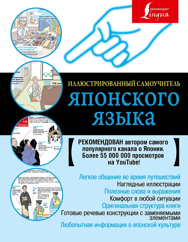 .Отличительной чертой пособия является то, что все слова и фразы на японском языке сопровождаются не только переводом на русский язык, но и транскрипцией русскими буквами.