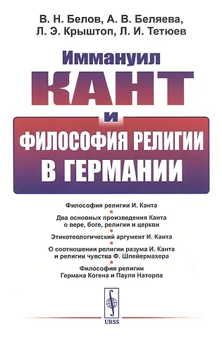 Монография посвящена проблеме развития философии религии в Германии в период с конца XVIII до начала XX вв. Основной и определяющей концепцией является концепция И. Канта. Кантовские взгляды на религию и его критика доказательств бытия бога вызвали еще при его жизни крайне неоднозначную реакцию, которая прослеживается и по сей день. Имеются как сторонники кантовского учения о религии, высоко оценивающие вклад Канта в последующее развитие философии религии и теологии, так и его противники, возлагающие на Канта ответственность за последующее развитие европейской цивилизации, в том числе и за негативные стороны секуляризации. Также в монографии анализируется философия религии Ф. Шлейермахера, Г