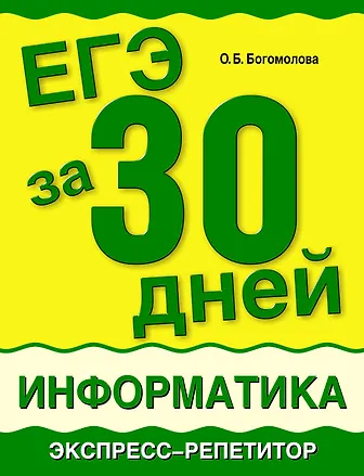 Информатика ЕГЭ за 30 дней Экспресс-репетитор. Ольга Богомолова. Книга для тех, кто как и мой сын вдруг решил изменить предмет. только начал готовиться к экзамену. Ту много разнообразных задач, с решениями и ответами. И что мне больше всего понравилось, объясняется, почему задача решается именно так, а не иначе. Потому что зачастую хочется решить совсем иначе. Если заниматься, то успеть прилично подготовится можно. Посмотрим, на сколько сдадим.
