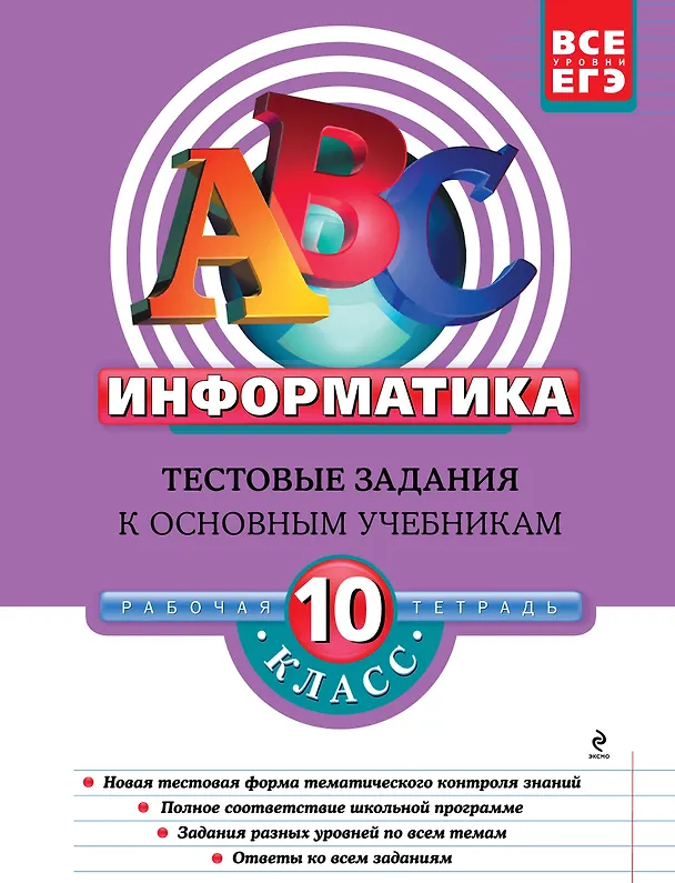 Информатика: 10 класс: тестовые задания к основным учебникам: рабочая тетрадь / (мягк)(АВС Все уровни ЕГЭ). Зорина Е., Зорин М. (Эксмо)