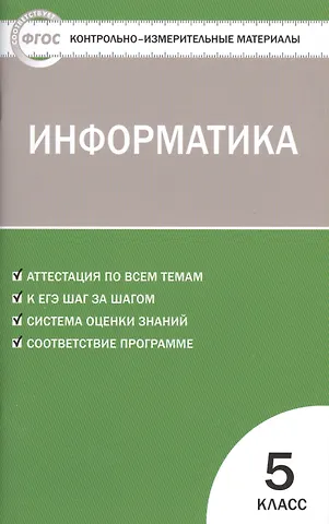 В пособии представлены контрольно-измерительные материалы (КИМы) по информатике для 5 класса. Издание составлено в соответствии с требованиями ФГОС. Структура КИМов аналогична структуре заданий ЕГЭ, что позволит постепенно подготовить учащихся к работе с подобным материалом. В конце издания предложены ответы к тестам. Пособие адресовано учителям, учащимся и их родителям. Допущено к использованию в образовательном процессе на основании приказа Министерства образования и науки РВ № 729.