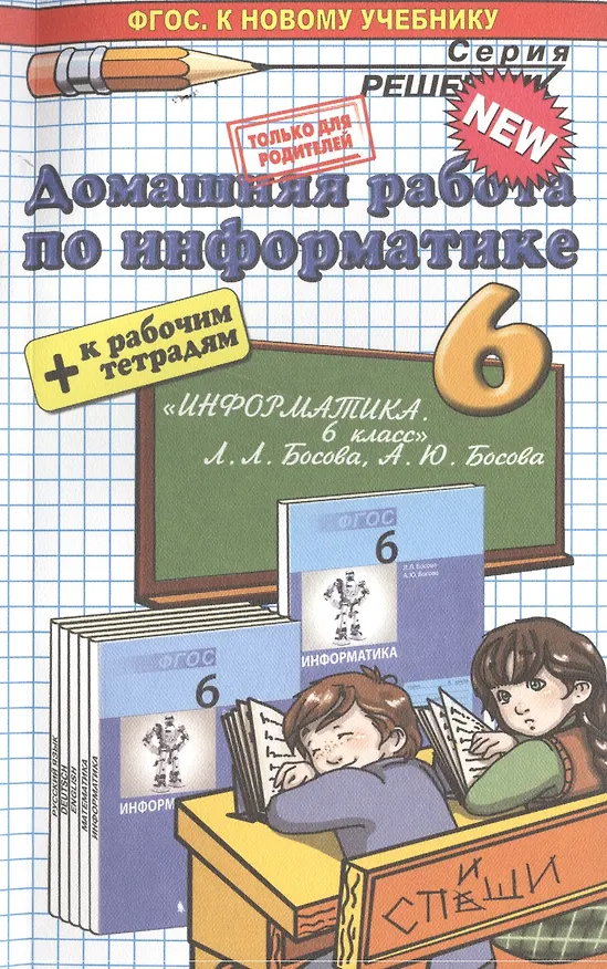 .Пособие адресовано родителям, которые смогут проконтролировать детей, а в случае необходимости помочь им в выполнении домашней работы по информатике.