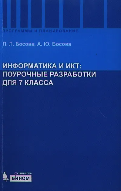 Пособие содержит методические рекомендации по организации обучения на базе УМК по информатике для 5–7 классов (автор Л. Л. Босова, издательство «БИНОМ. Лаборатория знаний»). Приведена примерная учебная программа по информатике и ИКТ для 7 класса, один из вариантов планирования с поурочными разработками, дидактические материалы, а также ответы, указания и решения ко всем заданиям в учебнике и рабочей тетради для 7 класса. В книгу включены несколько подробных разработок уроков, авторами которых являются учителя из разных регионов России.