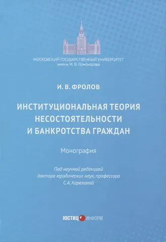 Монография посвящена исследованию процесса правовой институционализации сферы несостоятельности и банкротства граждан и формированию в системе российского права институциональной модели регулирования отношений, вызванных неоплатностью и (или) угрозой неплатежеспособности граждан-должников. В работе рассматриваются элементы общности правовых норм, юридических конструкций, правовых механизмов и принципов их реализации, предназначенных для регулирования общественных отношений, вызванных неспособностью надлежащего исполнения своих денежных обязательств со стороны граждан, испытывающих финансовые трудности. Автором предложена институциональная теория правового регулирования системы отношений сфер