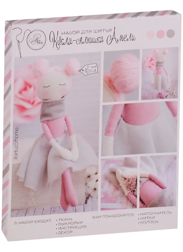 Милые текстильные куколки украсят интерьер и наполнят дом теплотой и уютом, солнечным настроением и позитивом. Они всегда «живые», так как сделаны вручную и хранят тепло души своего создателя. Поразительно, как простая кукла из ткани может нести в себе столько неповторимой прелести! Сколько ни смотри, никогда не найдёшь двух похожих, даже у одного мастера. Она будет отличным подарком близким и друзьям. В набор для шитья входит всё необходимое: ткань, выкройки, декор, инструкция. Дополнительно вам понадобятся: наполнитель, волосы, нитки. Коробка изготовлена из плотного картона, не мнётся при транспортировке.