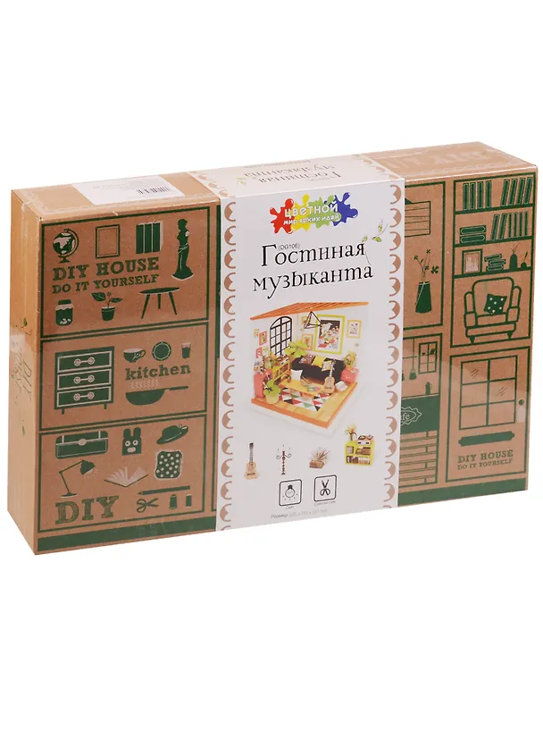 Роботайм. Размер готовой работы 20*18.5*18.7. Румбокс - это набор-конструктор для создания кукольного интерьера в миниатюре. В наборе вы найдёте все необходимое для творчества. С помощью ножниц и клея вы сможете собрать удивительно детализированный интерьер одной комнаты. Каждый элемент в комнате собирается из деревянных и бумажных элементов. Завершающим штрихом будет проводка электричества для миниатюрных светильников работающих от батарейки.