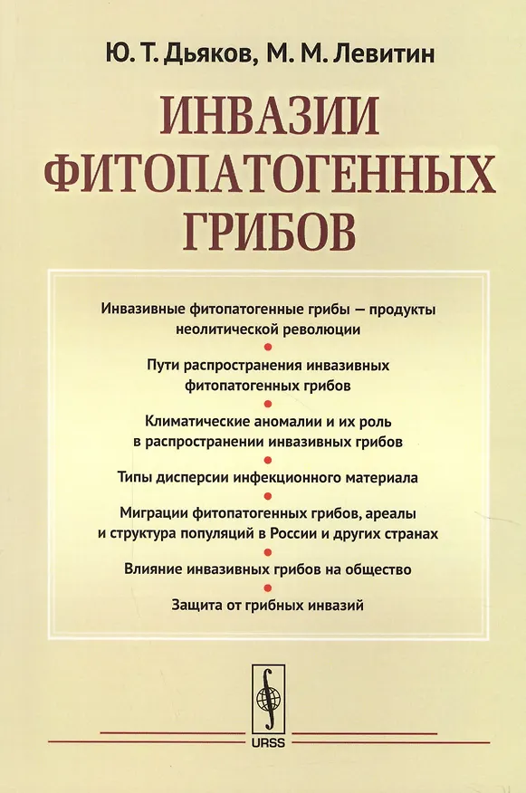 Фитопатология — наука о болезнях растений. В книге рассматриваются инвазивные виды и расы фитопатогенных грибов, способные занимать новые территории и вызывать опустошительные эпифитотии, нанося огромный ущерб сельскохозяйственным культурам, благосостоянию граждан и экономике страны в целом. Описываются эпифитотии фитофтороза картофеля в Европе, гельминтоспориоза риса в Бенгалии, южного гельминтоспориоза кукурузы в США, вилта хлопчатника в Средней Азии и др. Страшные эпифитотии сыграли трагическую роль в судьбах многих народов. В книге изложены механизмы возникновения инвазивных видов грибов, пути их миграции, ареалы и структура популяций наиболее вредоносных видов, обсуждается влияние инваз