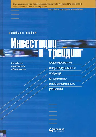 Саймон Вайн «Инвестиции и трейдинг: Формирование индивидуального подхода к принятию инвестиционных решений / 2-е изд. испр. и доп.» и выбрать удобный способ его получения: самовывоз, доставка курьером