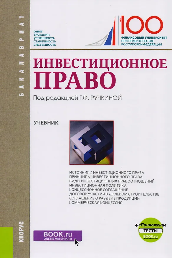 .Освещаются наиболее распространенные взгляды современных российских и иностранных ученых. Дан обзор законодательства, литературы, международных договоров, а также основных правовых документов по вопросам инвестиционного права. Для закрепления полученных знаний в каждой главе приведены вопросы и задания для самоконтроля, тесто