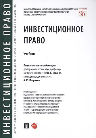 Особенностью учебника является рассмотрение правового регулирования инвестиционной деятельности по российскому законодательству, а также по праву ВТО и ЕАЭС. Представлены основы правового обеспечения инвестиционной деятельности в странах БРИКС.