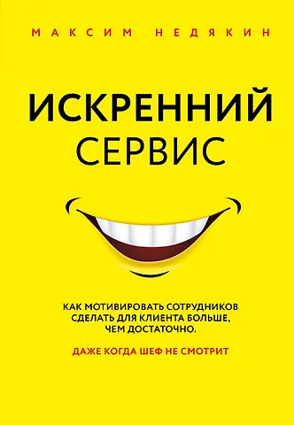 Максим Недякин - эксперт по вопросам сервиса и развития компаний. Генеральный директор консалтинговой компании «Стратегические решения», основатель «Retail Lab: Лаборатория розницы», совладелец розничной сети SPAR в г. Липецке, член совета директоров розничной сети «Уютерра». Создайте клиентоориентированный сервис без жесткой диктатуры сотрудников! Контроль за каждым шагом не сделает отношение по-настоящему искренним. Максим на примере российской и зарубежной практики объясняет, как создать добродушную атмосферу для клиентов компании и сделать сотрудников заинтересованными в развитии предприятия. В книге «Искренний сервис» вы найдете: - базовые правила создания качественного сервиса, -