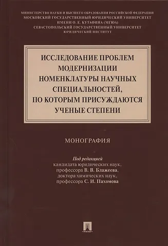 Исследование проблем модернизации номенклатуры научных специальностей, по которым присуждаются ученые степени. Монография