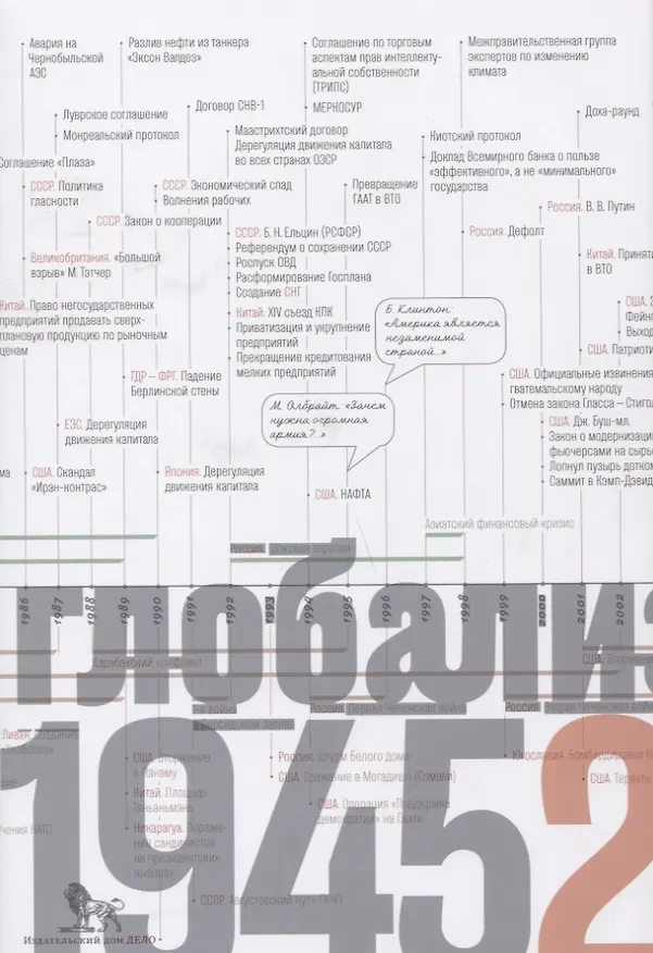 Автор настоящей серии исследований выделяет четыре источника власти — идеологический, экономический, военный и политический и прослеживает их взаимодействие на протяжении всей истории человечества. Четвертый том аналитической истории социальной власти Майкла Манна охватывает период с 1945 г. до наших дней, фокусируясь на трех основных столпах послевоенного миропорядка: капитализме, национально-государственной системе и единственной из оставшихся мировых империй — США. На протяжении этого периода капитализм, национальные государства и империи взаимодействовали друг с другом и изменялись. Основной аргумент Манна состоит в том, что глобализация включает в себя не один, а несколько процессов, по