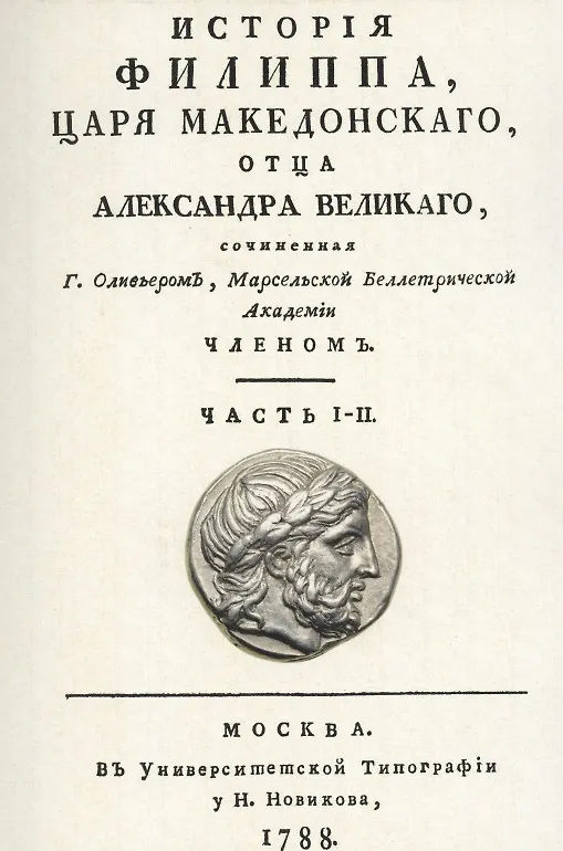 Репринт с издания. Часть I и II, сочиненная г. Оливьером, Марсельской Беллетристической академии членом. Перевел с французского В. П. - Москва. Унив. тип., у Н. Новикова, 1788-1789.
