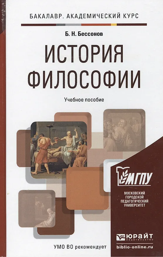 Учебник подготовлен в соответствии с программой курса "История философии" и государственным образовательным стандартом высшего и профессионального образования. В нем анализируются исторические этапы и основные направления развития философской мысли от античности до наших дней. Наряду с анализом классических школ философии рассматриваются также основные философские понятия, категории и проблемы. Для студентов, обучающихся по нефилософским специальностям, аспирантов, преподавателей и всех интересующихся философией и ее историей. Об авторах: Бессонов Б.Н., доктор философских наук, профессор, заведующий кафедрой философии Московского городского педагогического университета, автор ряда книг по фи
