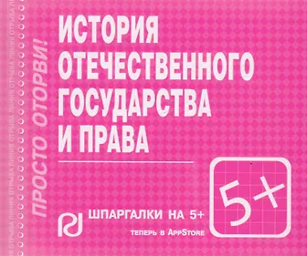 В работе в сжатой форме рассмотрены всё основные вопросы, предусмотренные учебной программой по дисциплине "История отечественного государства и права". Доступность и краткость изложения позволяют оперативно и легко получить основные знания по предмету, а также успешно сдать зачет и экзамен.Для студентов юридических вузов и факультетов.
