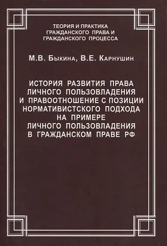 История развития права личного пользовладения и правоотношение с позиции нормативистского подхода на примере личного пользовладения в гражданском праве РФ. Быкина М.В., Карнушин В.Е.