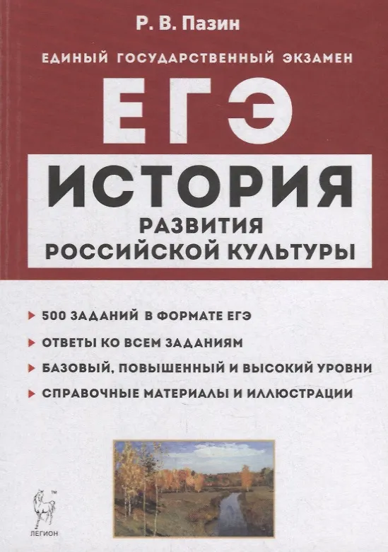 Подробное изложение истории развития российской культуры с VI до XX века, наличие практики и тренировочных вариантов, раздел с ответами. Доехал быстро и без повреждений.