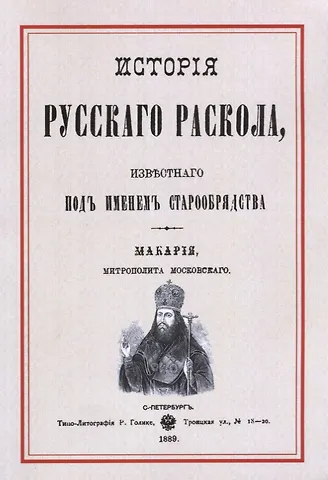 Книга по истории русского раскола, написанная ещё в девятнадцатом столетии московским митрополитом Макарием. Дан подробнейший разбор вопроса - от тонкостей обрядов и стрижения усов до истории раскольничьего движения и правительственных мер, принимаемых против раскольников. Репринтное издание, написанное ещё в дореформенных правилах правописания и мягкий переплет, поэтому, на мой взгляд, дороговато для такого исполнения.