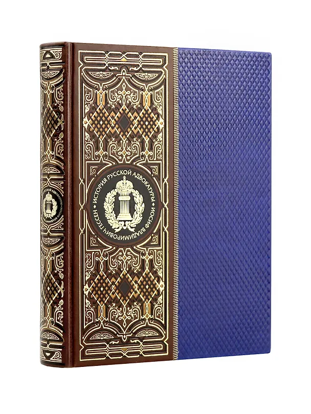 История русской адвокатуры. Книга в коллекционном кожаном инкрустированном переплете ручной работы с окрашенным и золоченым обрезом и многоцветным тиснением. Коричневая.