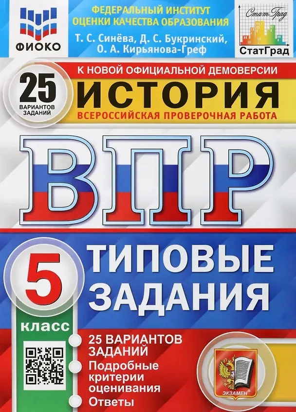 История. Всероссийская проверочная работа. 5 класс. Типовые задания. 25 вариантов заданий. Подробные критерии оценивания. Ответы