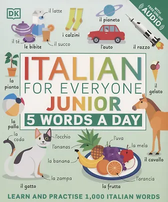 Italian Everyone Junior 5 Words a Day encourages children to copy the nouns and verbs related to each scene in the book, to test their knowledge by covering the words with jacket flaps, and learn one new Italian word every day.