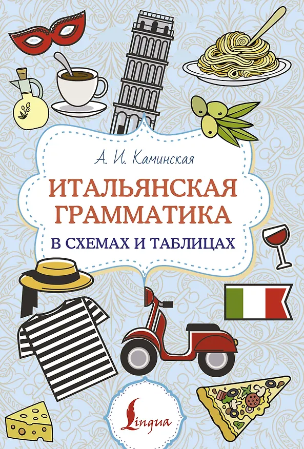 Пособие содержит базовый курс итальянской грамматики. Рассматриваются такие темы, как артикль, род и число существительных, степени сравнения прилагательных и наречий, местоимения, времена глагола. Материал представлен в четких и наглядных схемах и таблицах, что способствует быстрому и качественному усвоению. По пособию можно учить и повторять.