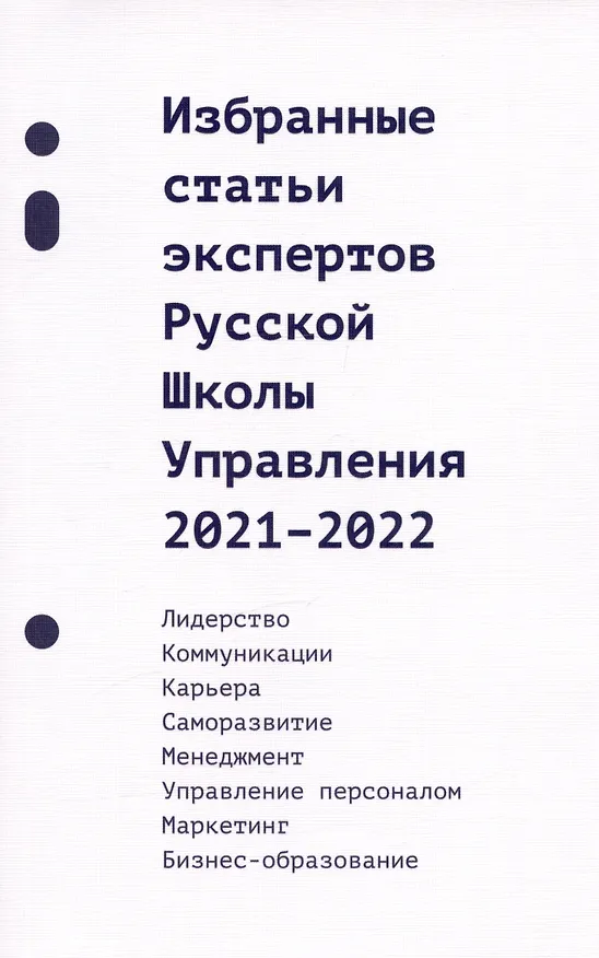 В книгу вошли лучшие экспертные статьи Русской Школы Управления, опубликованные на медиапортале uprav.ru в 2021–2022 годах по следующим тематикам: лидерство, коммуникации, карьера, саморазвитие, менеджмент, управление персоналом, маркетинг, бизнес-образование.