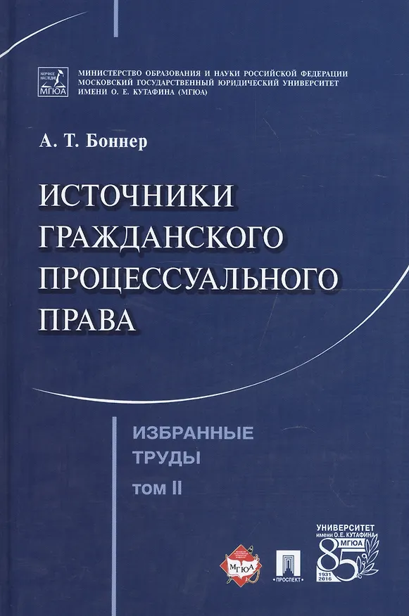 Том II «Избранных трудов» профессора А.Т. Боннера посвящен источникам гражданского процессуального права и применению нормативных актов в гражданском процессе. В частности, в небольшой по объему, но содержательной монографии «Источники советского гражданского процессуального права» (М., 1977) автор включается в дискуссию по одному из «вечных» вопросов теории советского и российского права: является ли судебная практика источником права? В данной, а также в других работах, включенных в настоящий том «Избранных трудов», рассматривается вопрос о пробелах в праве и путях их преодоления в процессе правоприменительной деятельности. В адресованном в первую очередь адвокатам пособии «Гражданский про