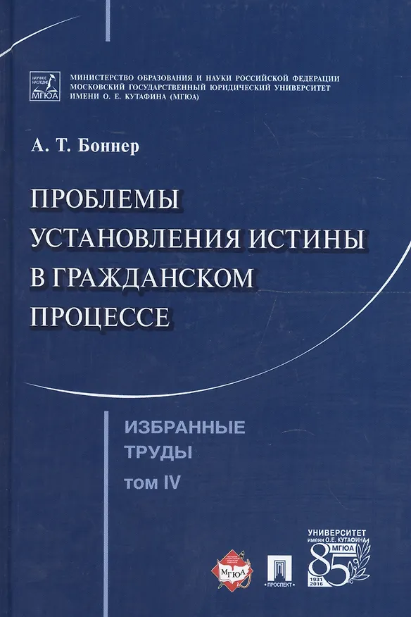 В IV томе «Избранных трудов» профессора А.Т. Боннера помещена его монография «Проблемы установления истины в гражданском процессе» (Спб., 2009). Автор размышляет о современных теоретических и практических проблемах правосудия по гражданским делам. В книге идет речь о содержании истины в гражданском процессе, специфике судебного познания обстоятельств дела, правовых презумпциях, соотношении принципа объективной истины и правила допустимости доказательств и ряде других актуальных для теории и судебной практики вопросах.«А судьи кто?» — вопрошает автор в одной из глав своей работы и пытается проанализировать возможности установления истины в суде в свете проблем российского судейского корпуса.